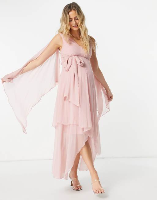 Asos Design Maternity Bridesmaid Ruched Bodice Drape Maxi Dress With Wrap Waist And Flutter Cape Sleeve In Blush Asos Drape Maxi Dress Bridal Dresses Dresses