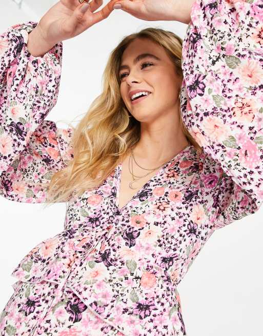Missguided Maternity Midi Smock Dress With Ruffle Detail In Pink Floral Asos